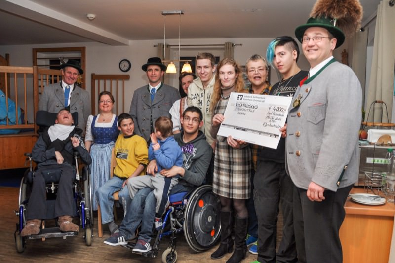 Mit einem Scheck machten sich Vertreter des Trachtenvereins „D´Jenbachtaler“ Bad Feilnbach auf den Weg zum Heilpädagogischen Wohnheim des Behandlungszentrums Aschau. Sie überbrachten die Spende der Aktion am vergangenen Bad Feilnbacher Waldadvent. Über 2000 Euro hatten die Besucher zur Unterstützung der Kinder mit Behinderung gespendet, die Trachtler rundeten diesen Betrag großzügig auf 4000 Euro auf. Entsprechend groß war auch die Freude der Kinder der Josefgruppe, die den großen Scheck stellvertretend für die anderen Kinder entgegenahmen und die Trachtler zu einem gemeinsamen Abendessen ins Wohnheim einluden. Im ungezwungenen Gespräch mit den Kindern und Jugendlichen, mit der Rektorin Susanne Kremer und der Leiterin des heilpädagogischen Wohnheims Eva-Maria Rehberg und den Betreuern konnten sich Vertreter des Trachtenvereins selbst ein Bild vom Alltag der Kinder machen. Das Geld soll unter den verschiedenen Einrichtungen des Behandlungszentrums aufgeteilt und in Ferienfreizeiten, Ausflüge und in neue Fußballtore investiert werden. Nach dem beeindruckenden Besuch bei den aufgeweckten und vor allem gut gelaunten Kindern und Jugendlichen waren sich die Trachtler einig: „Das Geld ist hier richtig investiert“.